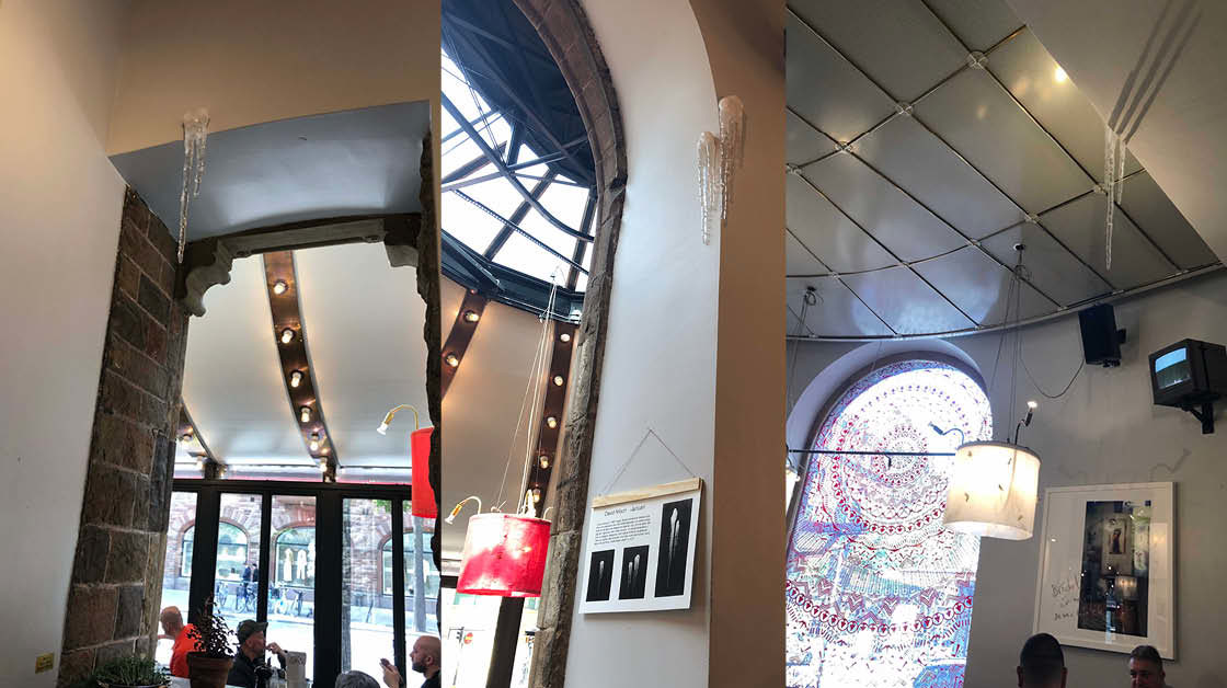 David Nilson jobbar med skulptur och hans estetik rör sig i en slags avskalad surrealism. I hans bildvärld är objekten inte stora och expressiva utan istället lågmälda och underfundiga, som om att idén vore viktigare än objektet i sig. Och de dyker ofta upp lite i ögonvrån, som verket Januari – en skulpturinstallation i form av istappar. Istapparna, som i själva verket är skulpterade i lera och gjutna i klar polyester, visar han i stora baren här på Riche.