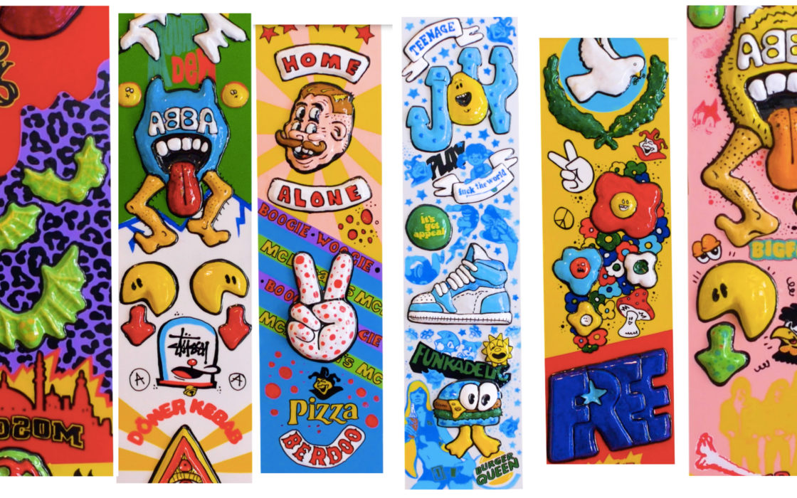 Pontus Djanaieff utforskar samtiden genom sina skulpturer i plast och sina textila verk. Hans influenser kommer från allt från barndomshjältar till ungdomskultur och tar sig uttryck i färggranna popexplosioner.